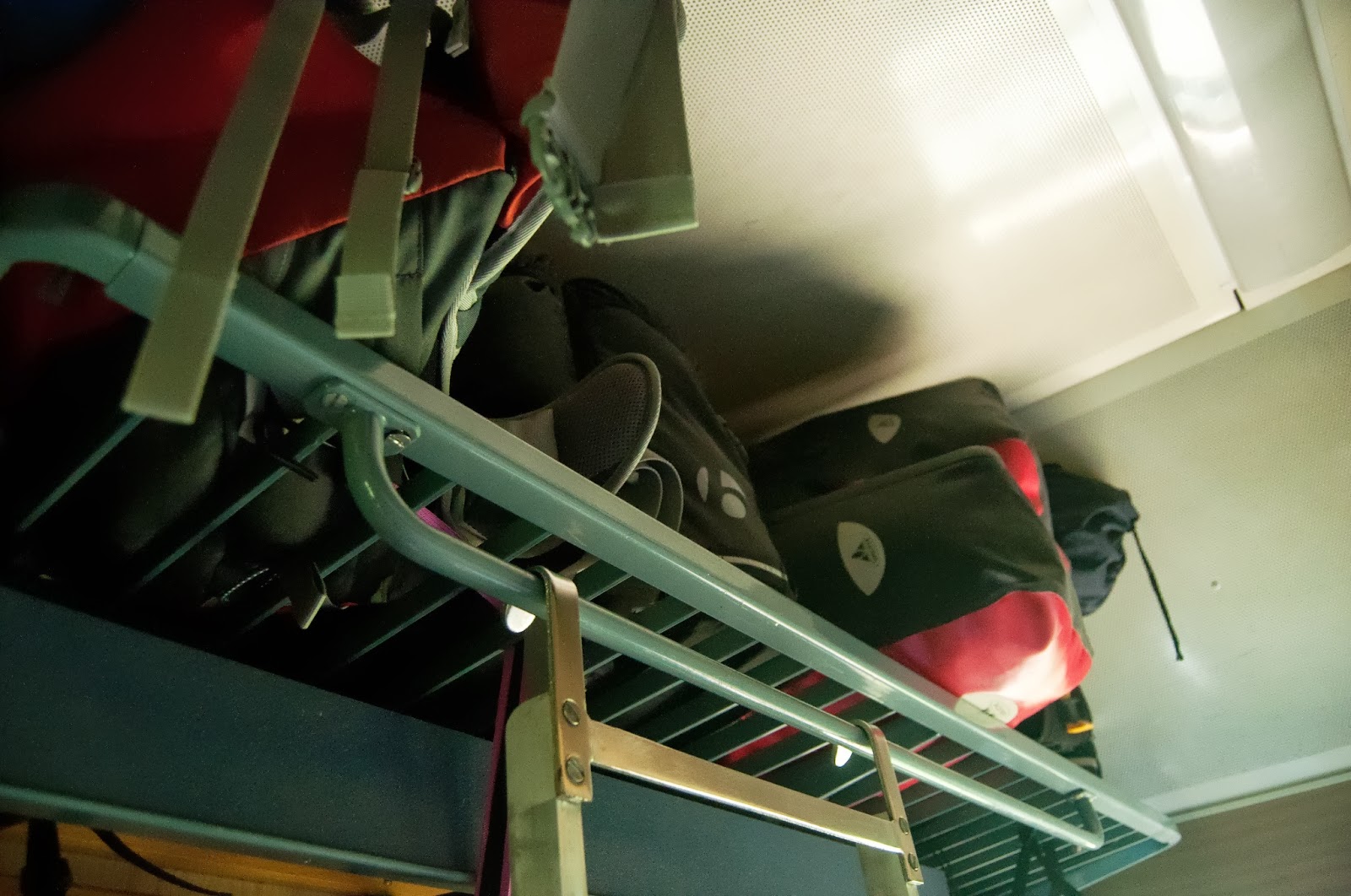 Si…reusim. 3 bicle stau in spatiul de cuier al cusetei (cu rotile fata scoase si folosind chingi si cordeline pentru a le fixa), in vreme ce cutia cu a 4-a este pusa pe patul cel mai de sus. Sa nu amorteasca pe drum, nu de alta…
