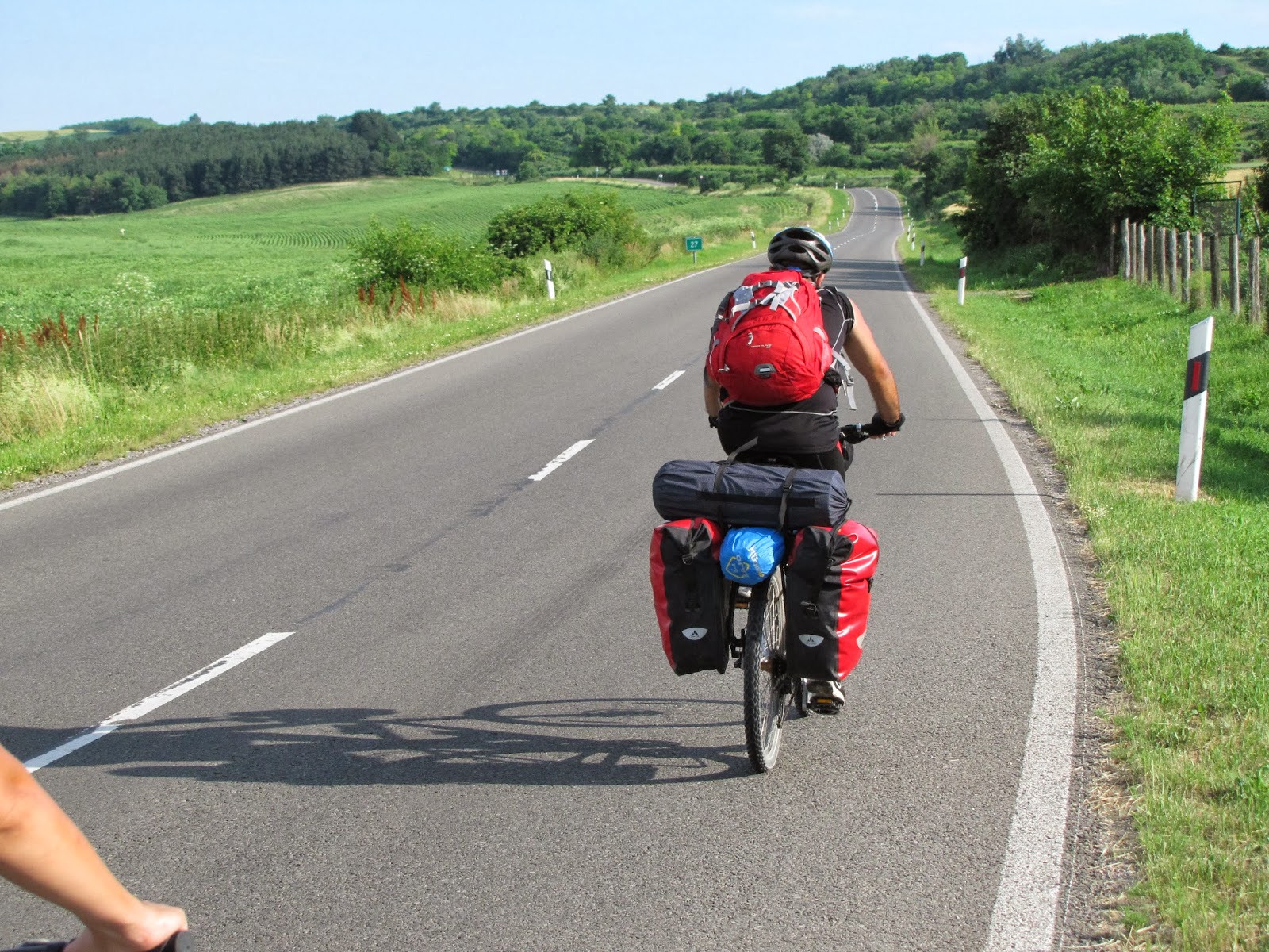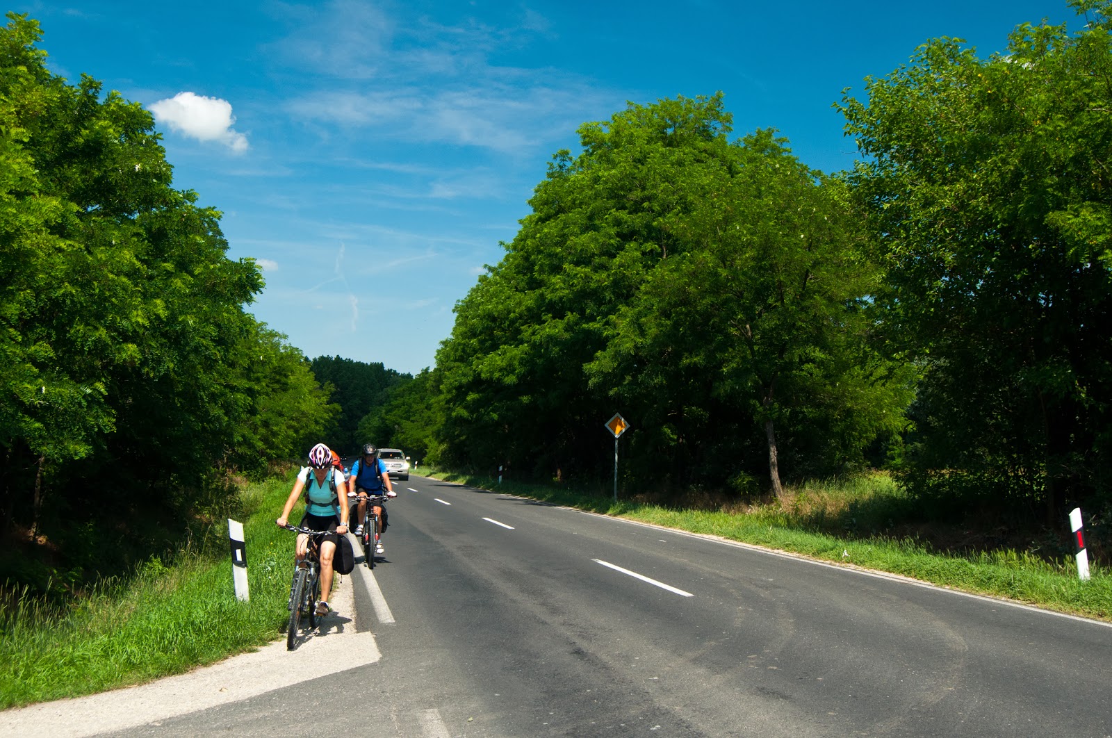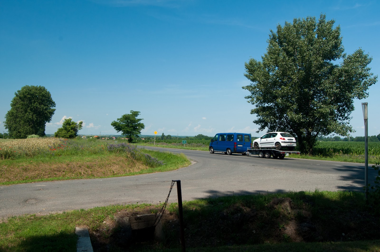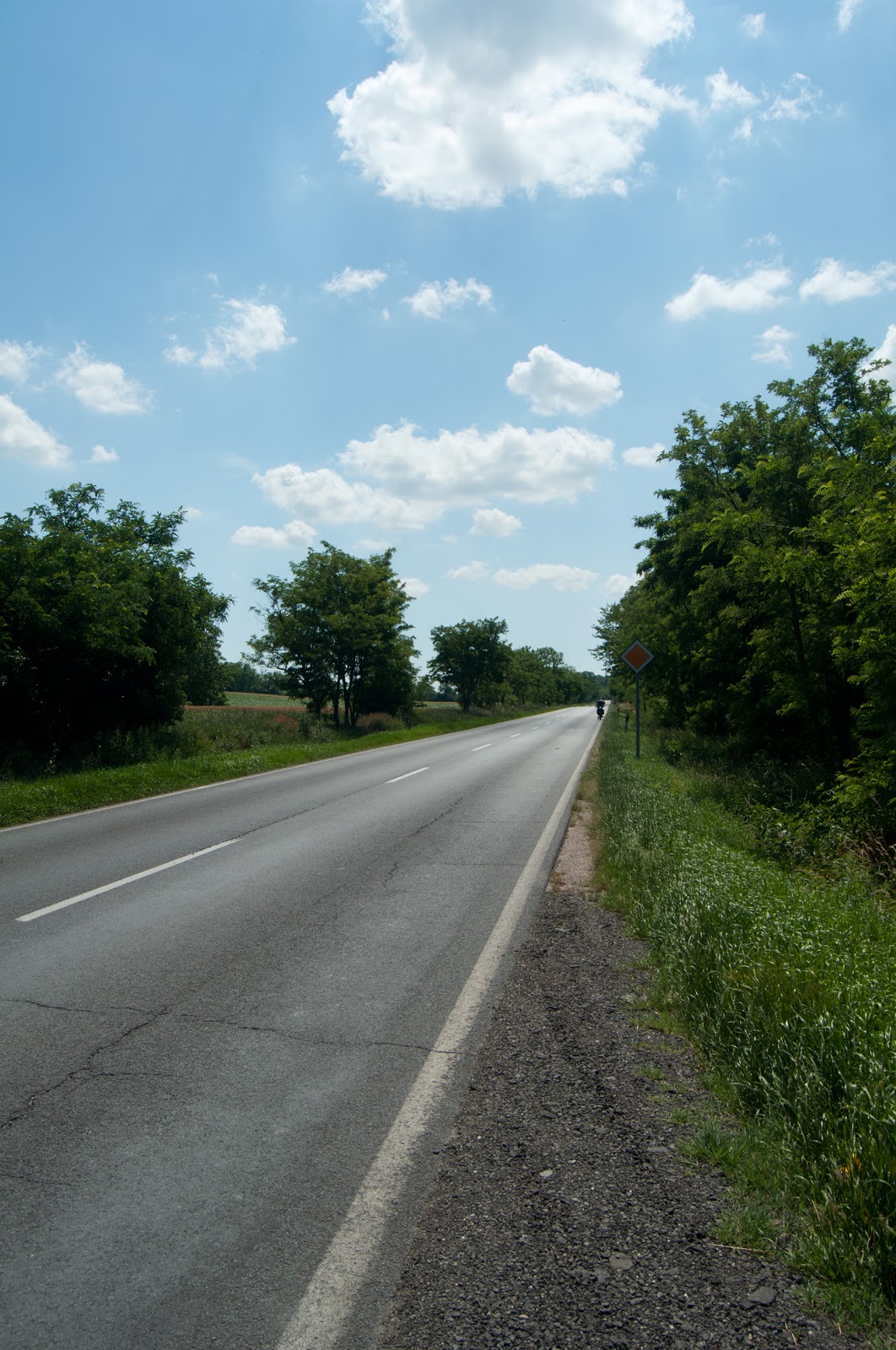 O apucam catre Cece, parcurgand vreo 2 km de drum european, pe E73. Trafic lejer, poate pentru ca este duminica. In scurta vreme, tragem pe dreapta nitel pentru a manca si restul din ciresele cumparate ieri.