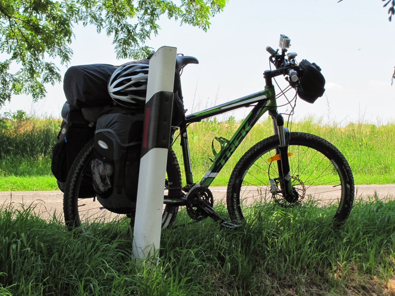 Ne invioram, strangem tabara, ne luptam cu tantarii care fac tot posibilul sa te ciupeasca in continuu de la prima ora. Observ ca am o spita rupta la roata din spate. O indes inapoi in janta si torn niste prenadez (adus de Mircea) pentru a o tine cat de cat acolo.