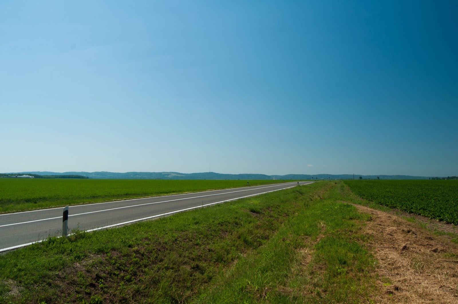 Iesim din Osijek pe un drum de centura, cu mutle camioane. Din fericire, urmeaza o bifurcatie in 3 km, astfel ca scapam de traficul greu.