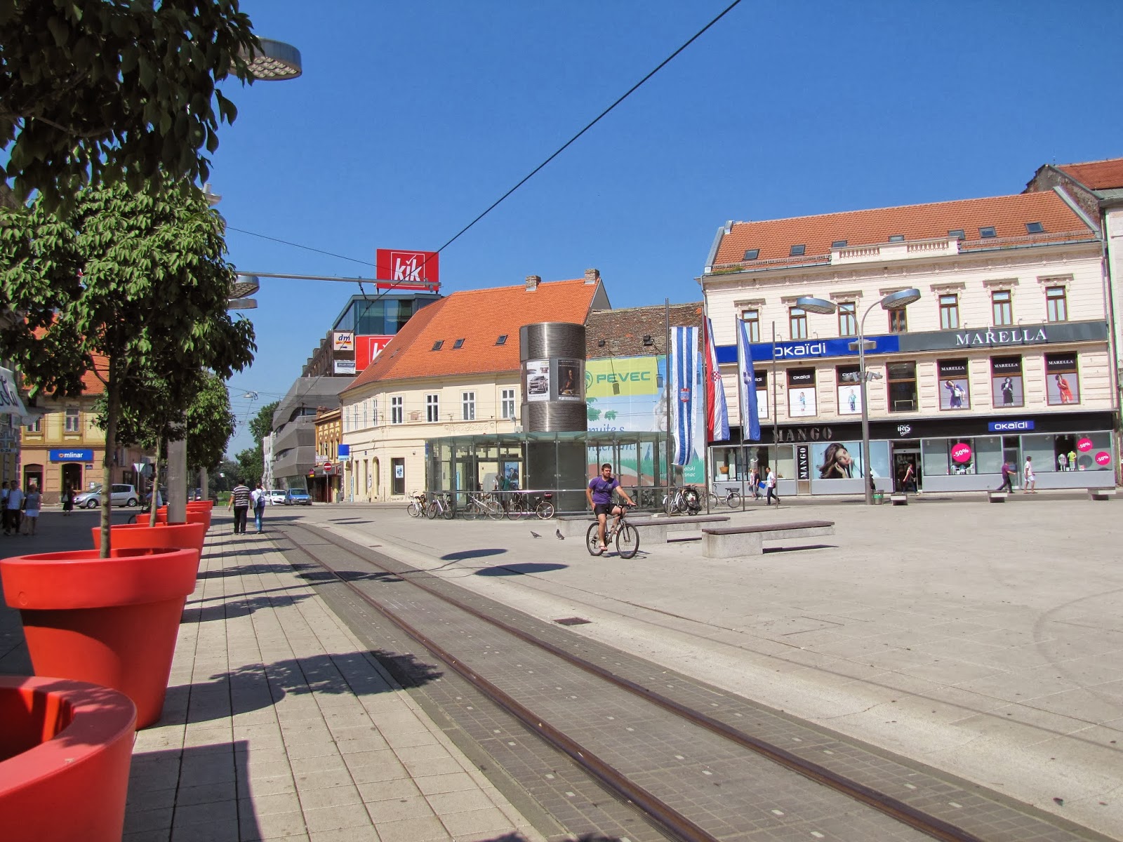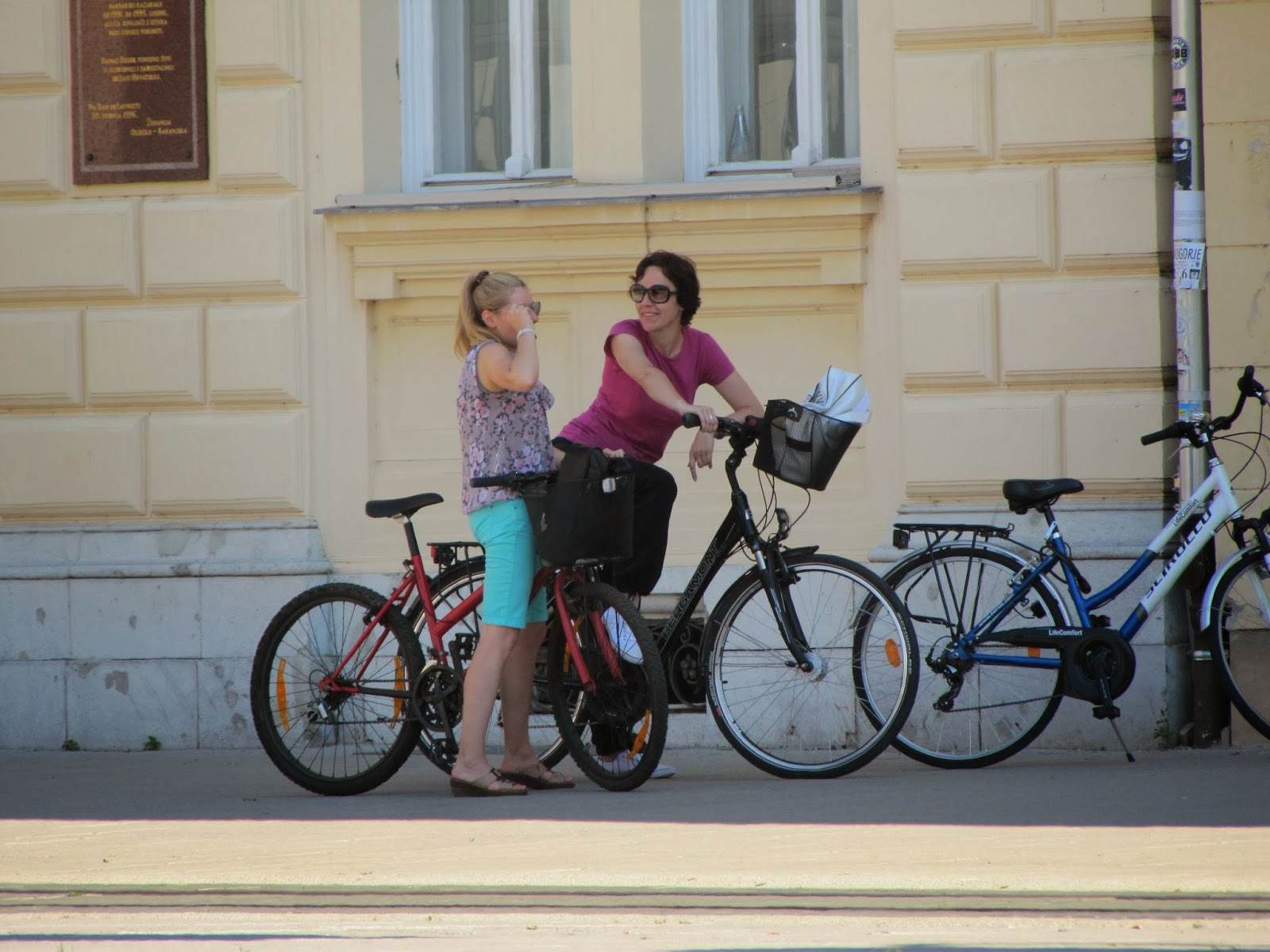 Oprim in zona centrala. Bem doua beri (Osjecko – foarte buna!), stam la umbra si mancam cate-o inghetata. Observam ca este un oras in care oamenii folosesc foarte mult bicicleta. Oameni de toate varstele, doamne si domnisoare, copii si domni in etate.
