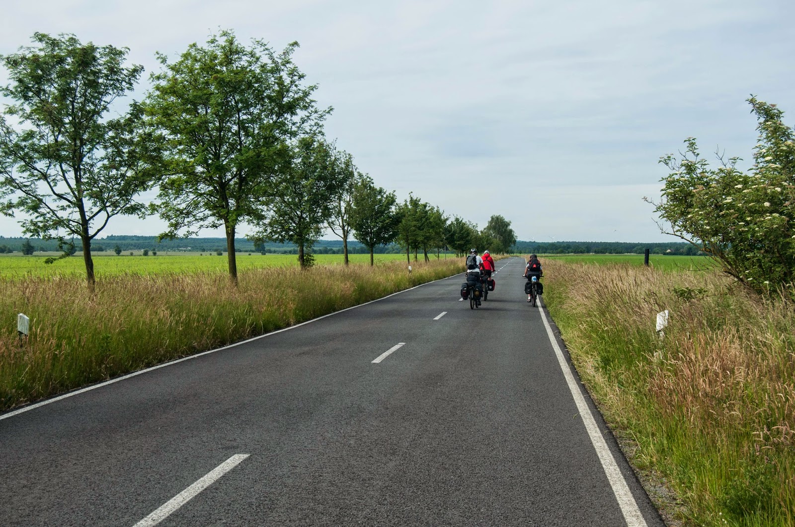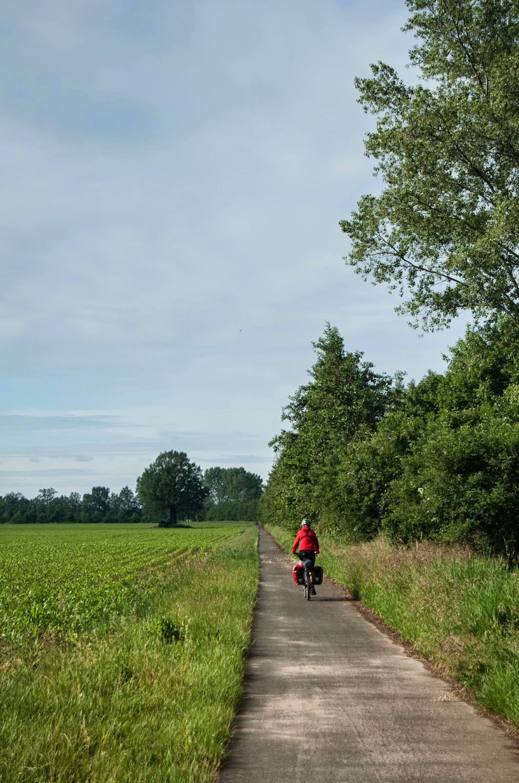 Pedalam cand pe sosea, cand pe piste. Inspre Radeburg, ruta pentru biciclete ne trece pe un drum tehnic al unui lac artificial. Pe aceasta pista (cu dale din beton) ii dam tot inainte pana-n camping.