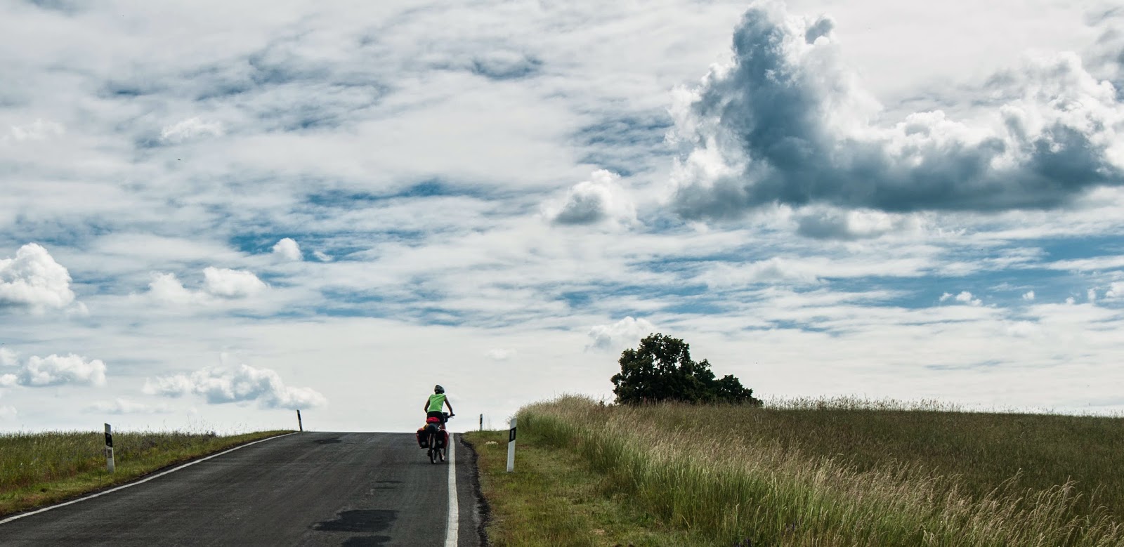 Traversam mici localitati pe masura ce vantul tinde sa se inteteasca. Normal, caci in spate este catamai norul…
