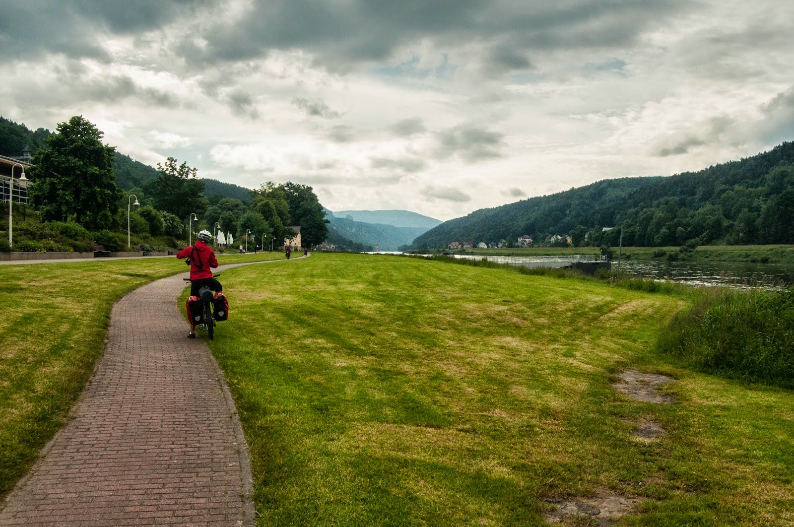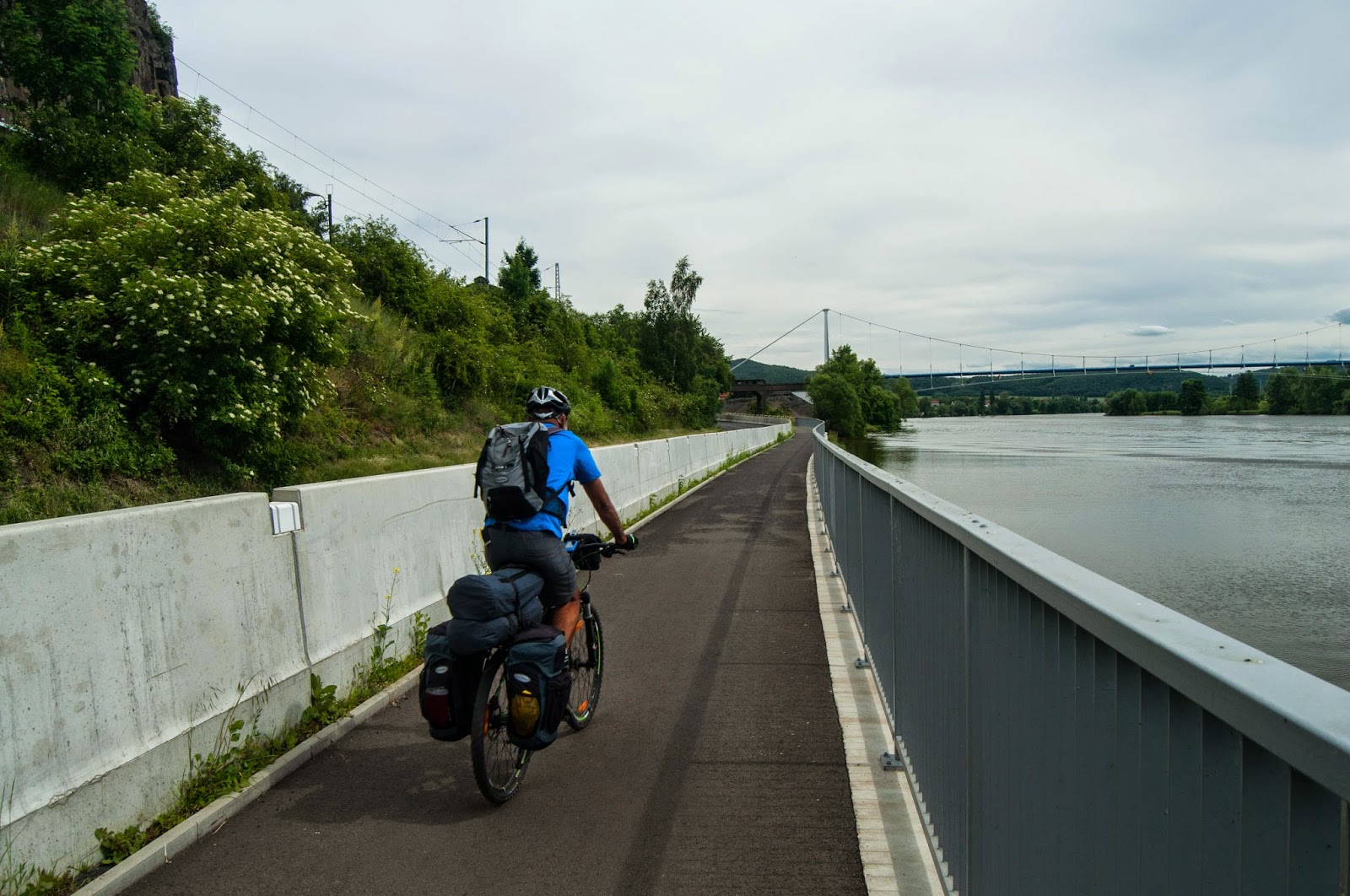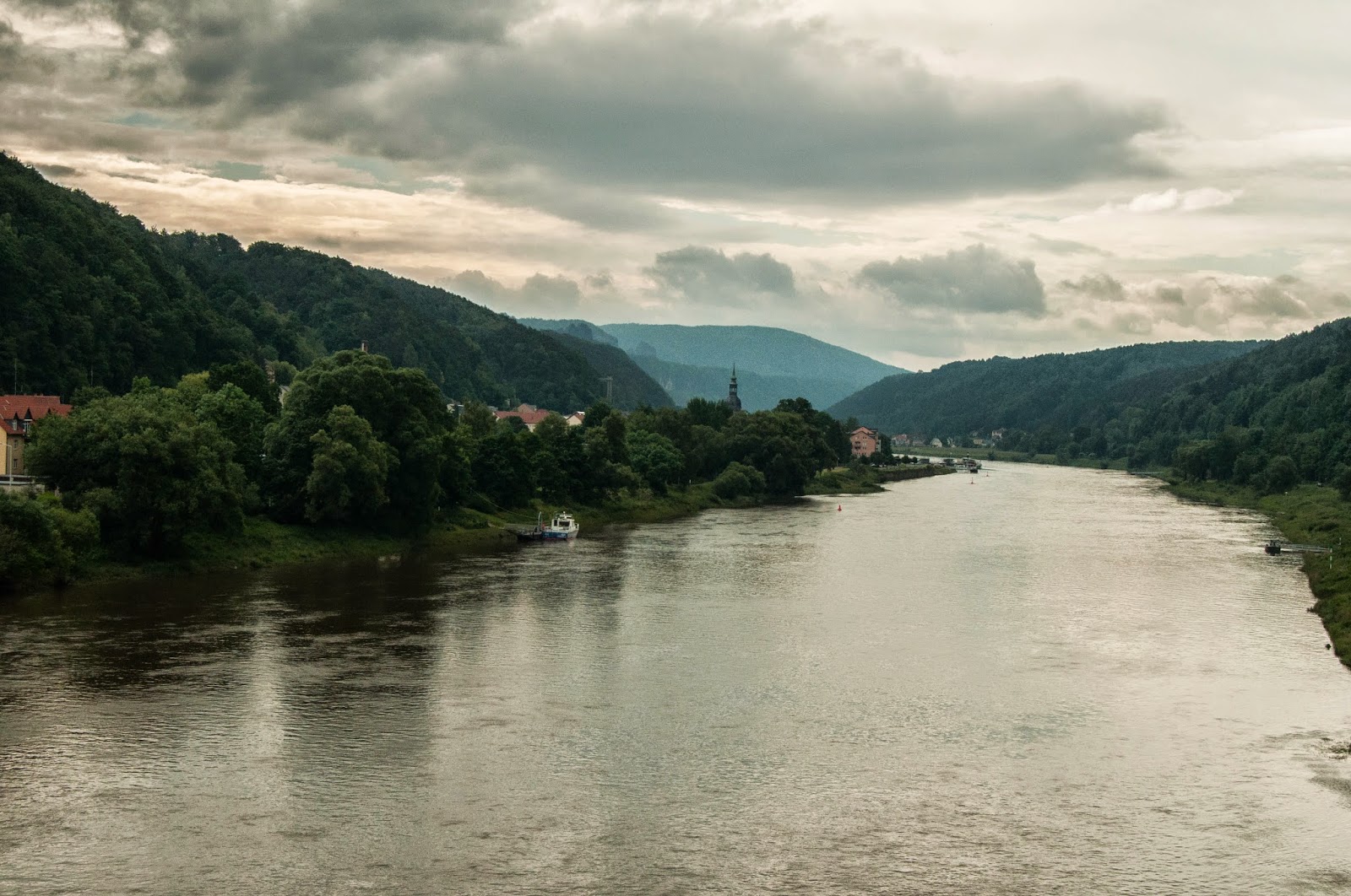 Urmeaza sa parasim Germania in curand, iar ruta Eurovelo 7 pare ca vrea sa ne treaca cu bacul pe malul celalalt. Insa programul incepe mai tarziu, dupa 9:00 AM. Decidem sa nu asteptam si observ ca am putea reintra in ruta undeva prin Děčín, odata ce trecem in Cehia.