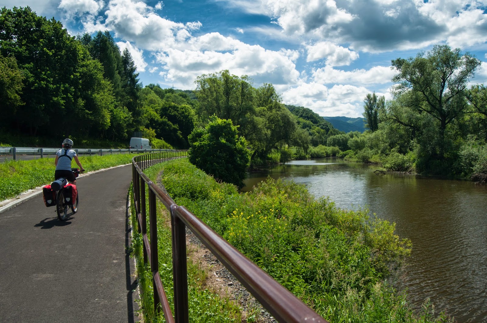 O buna bucata de vreme mergem pe Eurovelo 7. Impecabil amenajata si marcata. In Cehia, toate rutele pentru biciclete sunt marcate cu mici indicatoare pe fundal galben, cu semnul bicicletei si un numar. Din cate mi-am dat seama, este un cod la nivel national ce identifica ruta respectiva ca facand parte din infrastructura ciclista a Cehiei (din meniul “Map Layers”, bifati “Routes” si “Cyclists Welcome”).