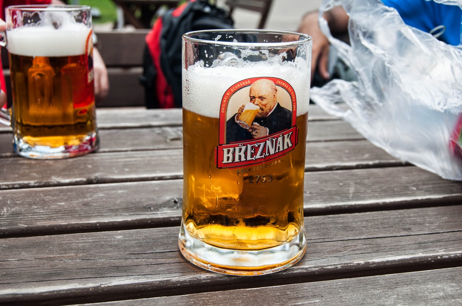 Cand am atins 50 km, vedem o terasa chiar pe marginea pistei. Oprim si servim bere Breznak. Foarte buna, 33 coroane o halba.