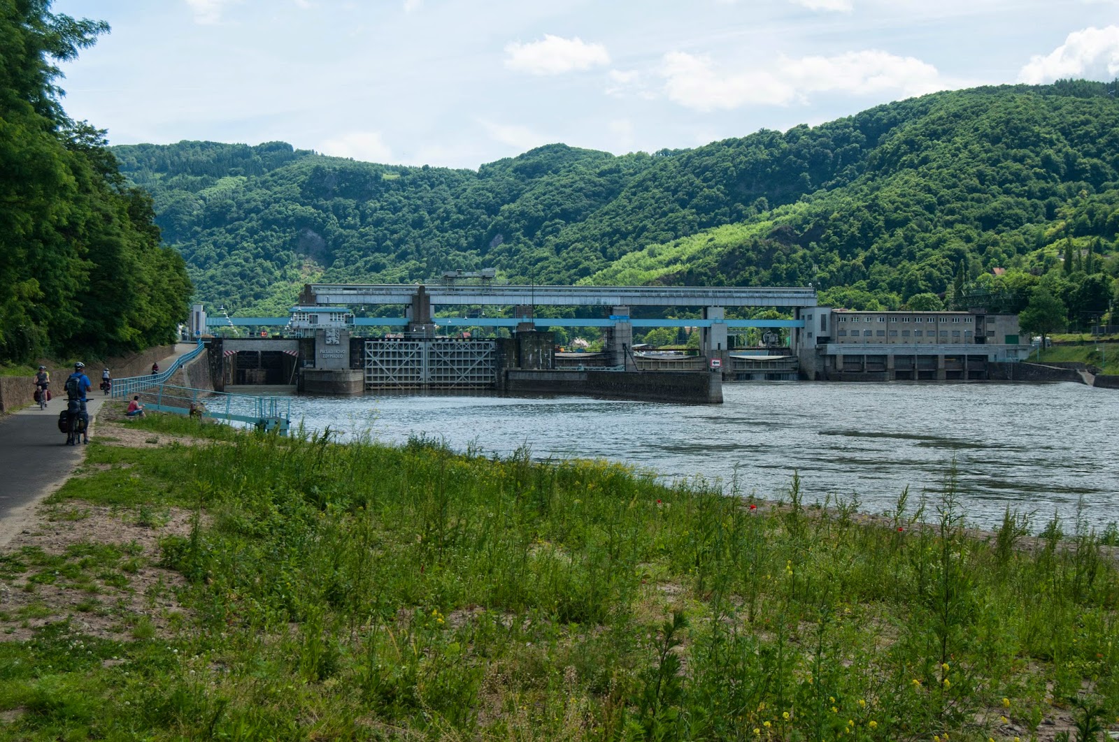 Dupa Usti nad Labem, ajungem la barajul Strekov. Aici, scarile au amenajata o zona pentru a te ajuta sa impingi bicicleta. Cu tot cu marcajul aferent.