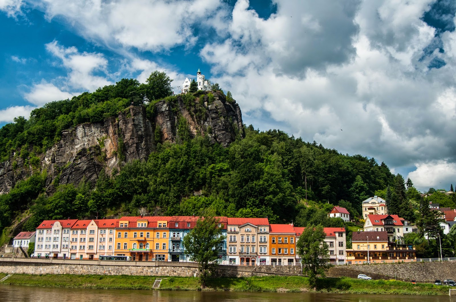 Dupa 15 km de sosea, intram in Děčín. Cautam un loc pentru a servi o gustare, iar apoi o banca pentru a schimba bani. Gasim o sucursala membra a Groupe Societe Generale (“KB” ii spune).