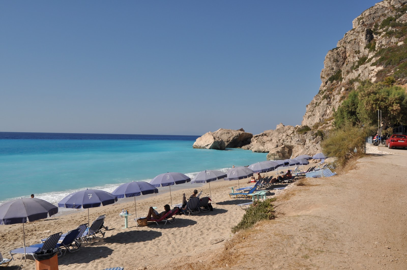 Tinand indicatorul de Agios Nikitas, ajungem la un moment dat la o bifurcatie. Veti intalni un indicator clar catre plaja. Urcati ~300 metri, ca mai apoi sa zariti coasta. Incepe coborarea, alcatuita din serpentine. Nu sunt insa atat de stranse, dar atentia este binevenita caci in partea de jos sunt portiuni de nisip pe marginea asfaltului si o eventuala franare in curba la viteza mare poate fi problematica.