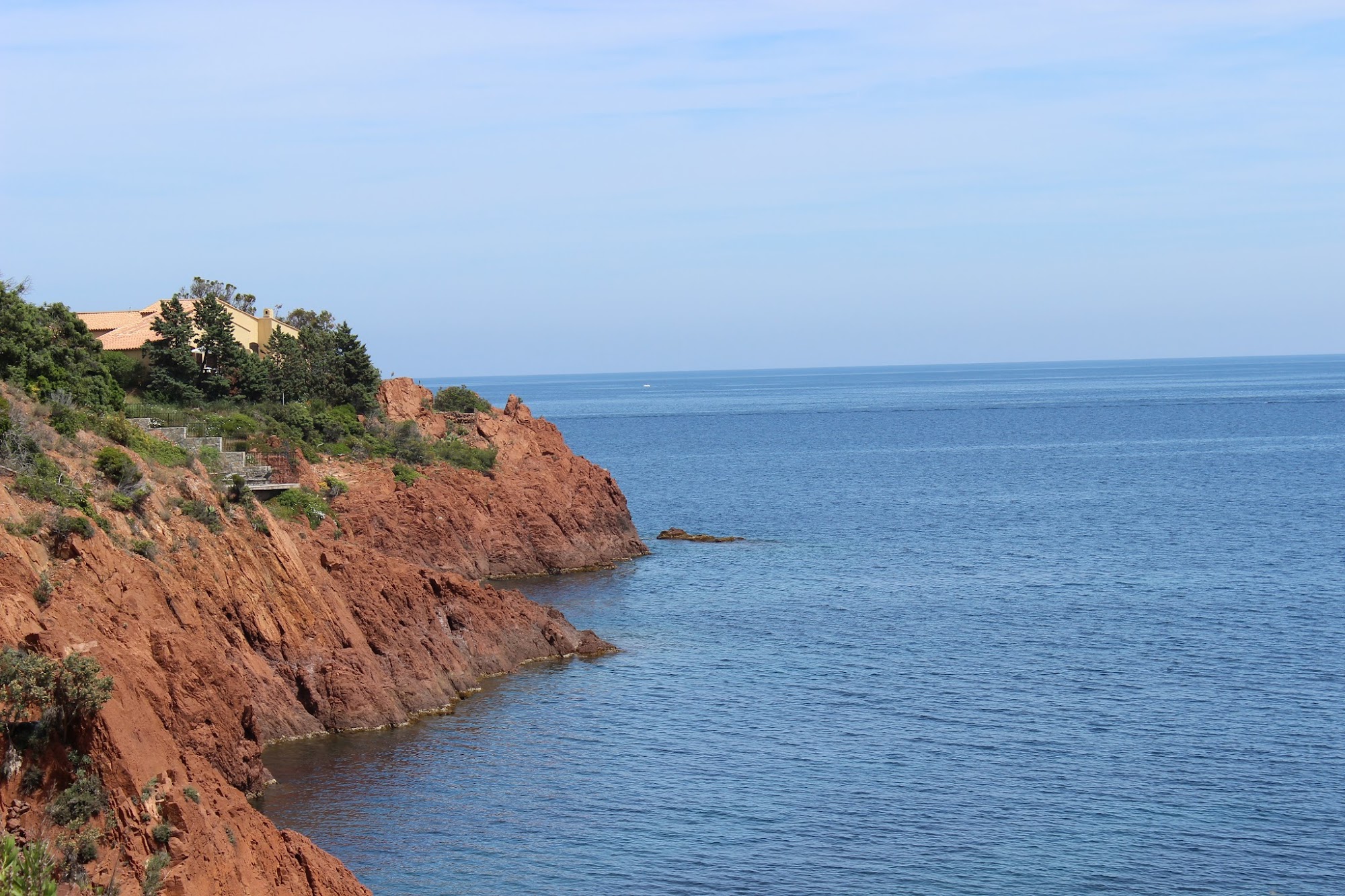 Coasta de Azur este absolut incantatoare. Soseaua urmeaza indeaproape linia dezordonata a tarmului, parca de culoarea fucsinei. Micile asezari sunt cat se poate de pitoresti. Vile cocotate de deal, terase largi si piscine la tot pasul. Nu pot lega linistit cativa km pentru ca trebuie sa opresc ca sa casc ochii si sa prind in poza golfurile spectaculoase.
