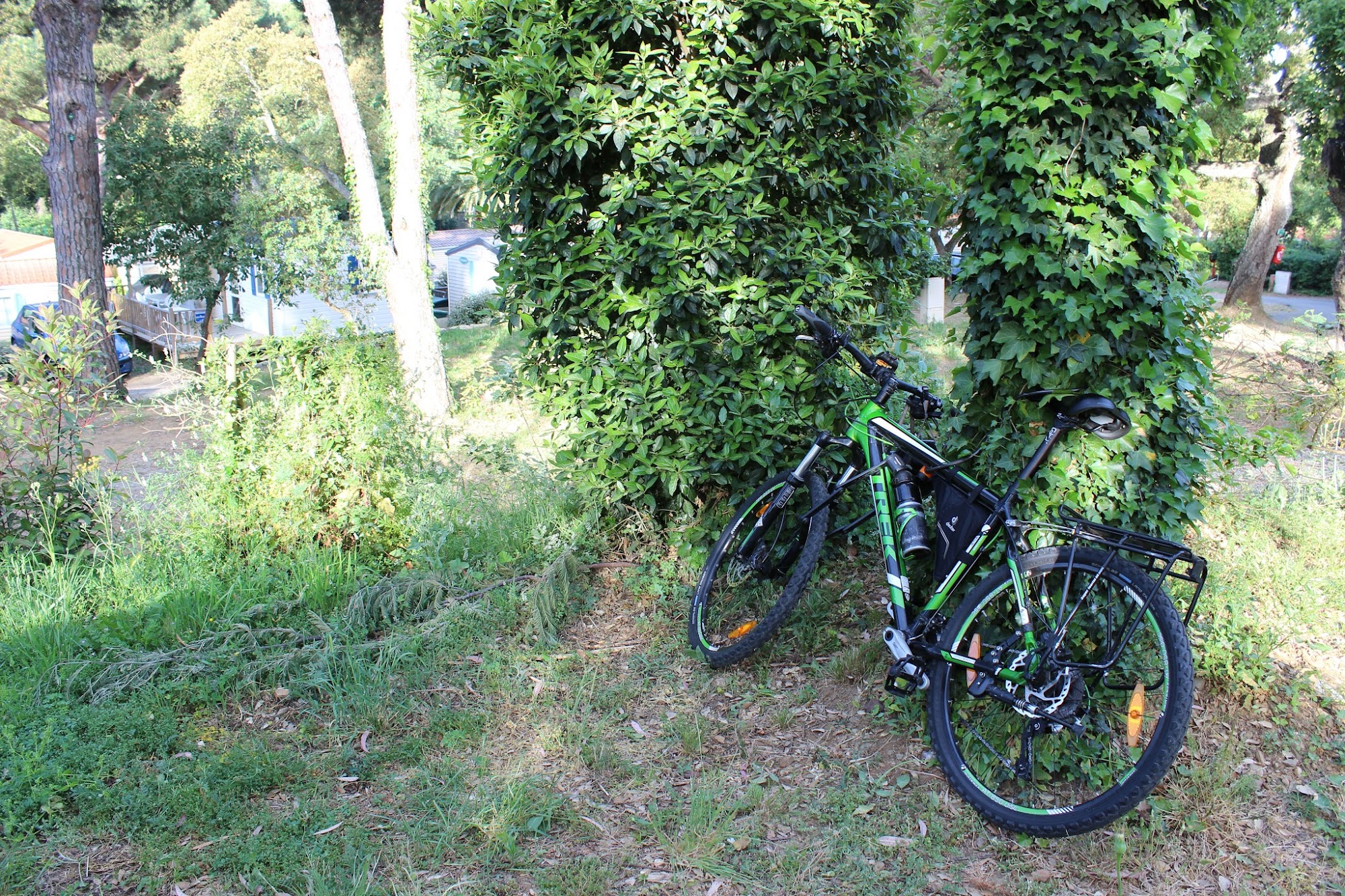 La 18.30 ajung la camping. Acesta se afla in zona localitatii Gassin, la 10 km de St Tropes. Imens, situat intr-o padure pe un deal in panta, cu alei betonate se adreseaza in special celor care vin si inchiriaza casutele din el. Foarte cochete, au cam la 20-30 m2, sunt mobilate si cu toate utilitatile. Locurile pentru cort sunt putine. Nu recomand pentru cicloturisti, din pricina pretului de 20 Euro.