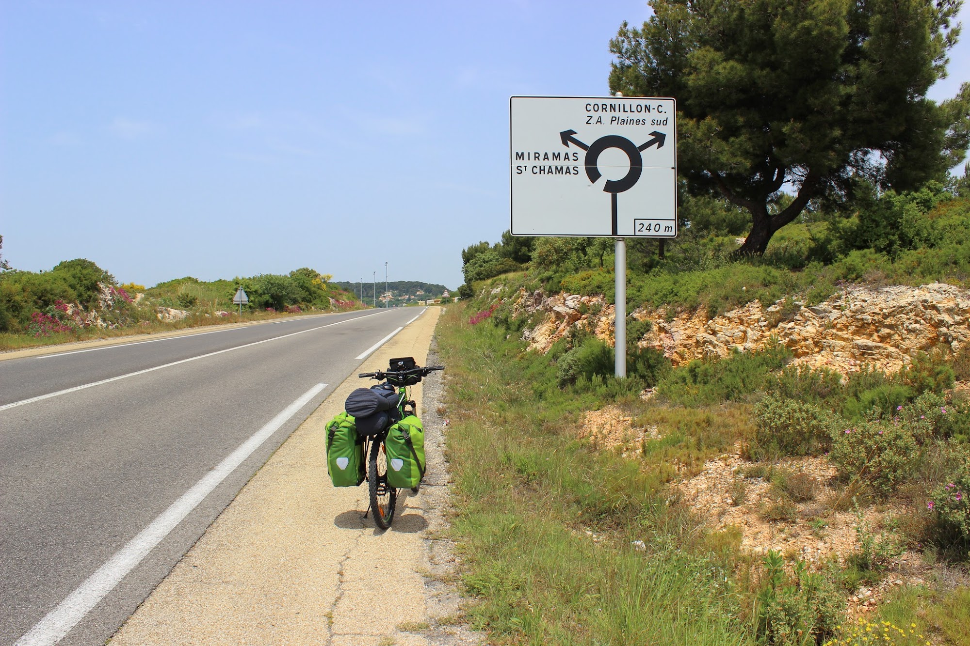 Gasesc D96 si merg mult pe el. Traseul este plat, chiar si cu ceva coborare. Kilometrii se succed repede. Trec prin Roquevaire, La Bouilladise, La Canet. Reper a fost Aix-en-Provence, un orasel mai rasarit ce aparea pe harta. Ca de obicei, iesirea catre Arles e de negasit. Intreb si pana si localnicii au dificultati in a da explicatii. Unul imi si explica de ce asa mari batai de cap cu iesirea: “Din orasul asta ies numai autostrazi”. E, iata ca unii au o problema cu autostrazile, imi zic.