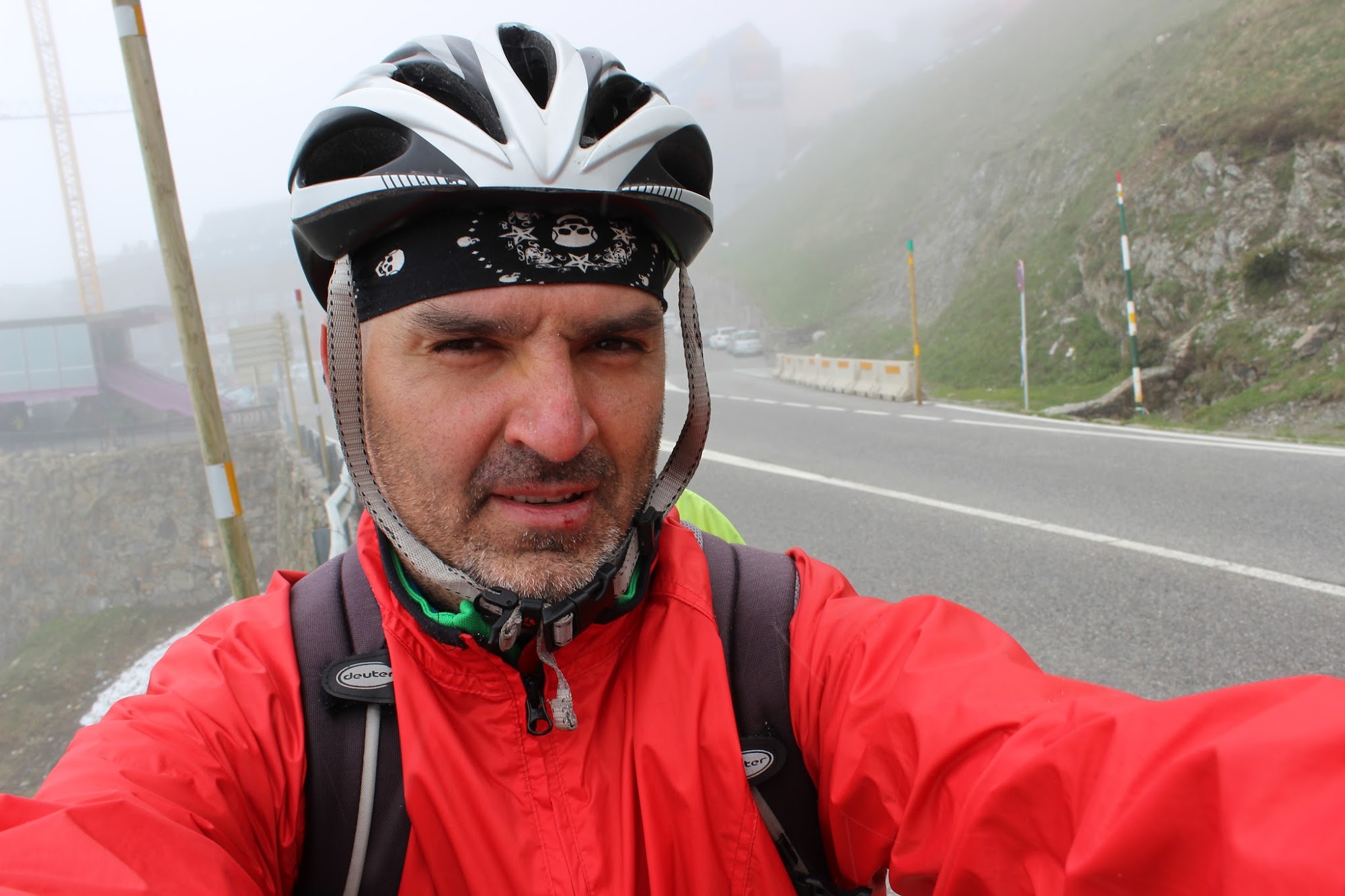 Apare ceata si o ninsoare fina, dar nederanjanta. Se face frig. Pun doua tricouri pe mine, o bluza si fasul. Sub casca pun o bandana. Foarte multi soferi ma incurajeaza in timp ce trec pe langa mine. Lucrul asta imi da aripi si entuziasm.
