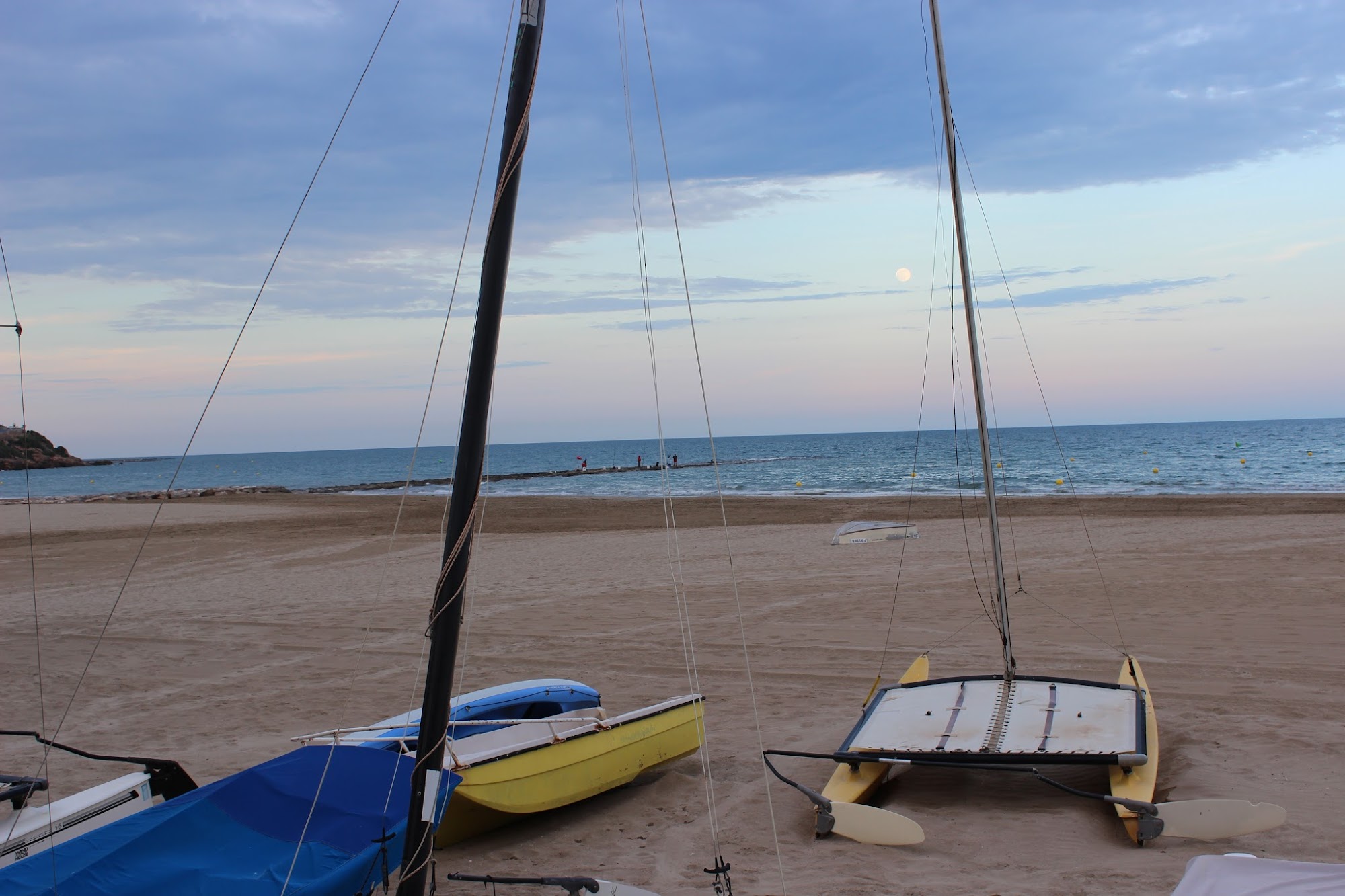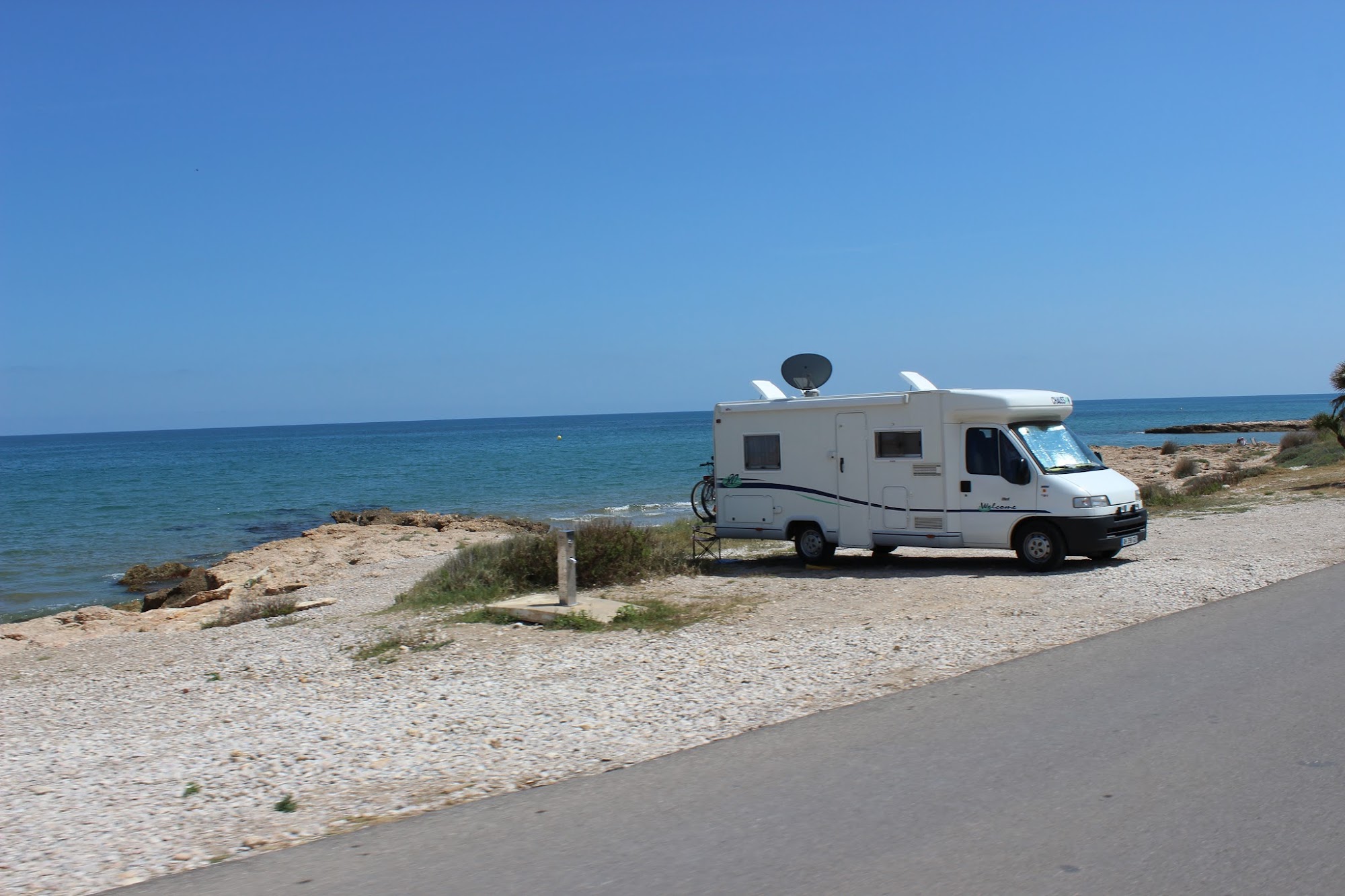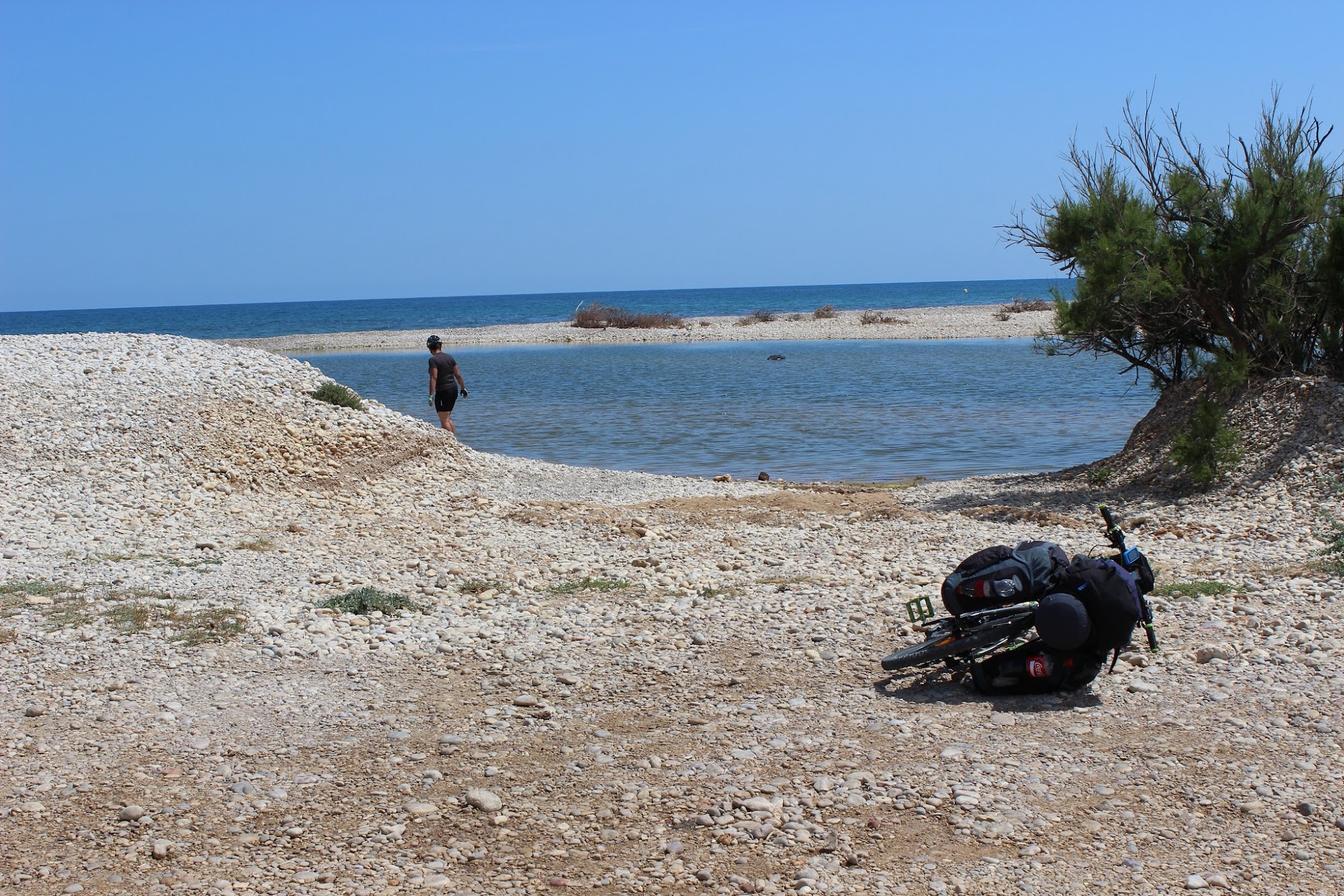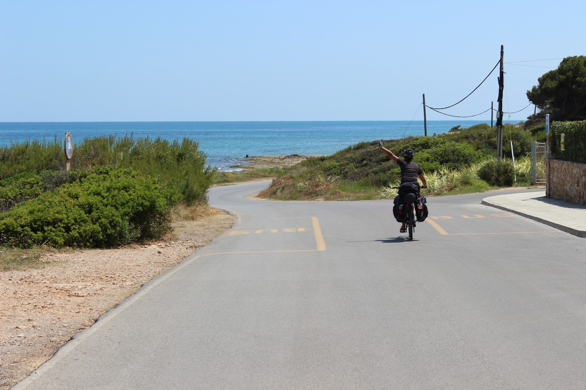 Cam 20 km pedalati si, pe partea cealalta a muntelui, drumul se aplatizeaza si revenim la mare. Suntem in Alcossebre. Terasele ne imbie la a poposi la niste beri reci. Aceleasi plaje din pre-sezon, cu putina lume si multa liniste. Interzis a monta cortul si de a intra cu animale de companie arata un indicator. Multitudinea de semne te mai indeamna la curatenie si conduita adecvata. Pe masura ce ne departam de locurile amenajate, nisipul se transforma in pietris si tufisurile tepoase iau locul sezlongurilor. Sunt locurile preferate de cateva persoane venite cu rulota, cautand probabil izolarea deplina. Toate astea se termina in zona numita Pinta Capicorb, in locul unde raul Caves se varsa in marea Balearelor. Dam si de o discoteca, aflata intr-un fost deposit portuar din sec 18. Cladirea din piatra, cat si cele cateva imobile din jur dau un farmec aparte locului.
